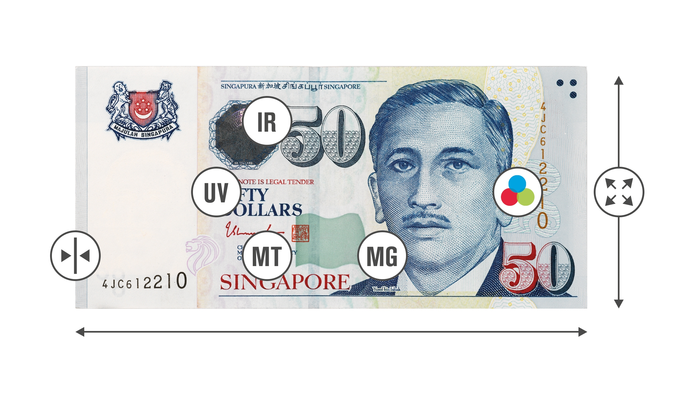 - 7-point automatic counterfeit detection: Infrared, Magnetic ink, Metallic thread, Watermark, Color, Size and Thickness