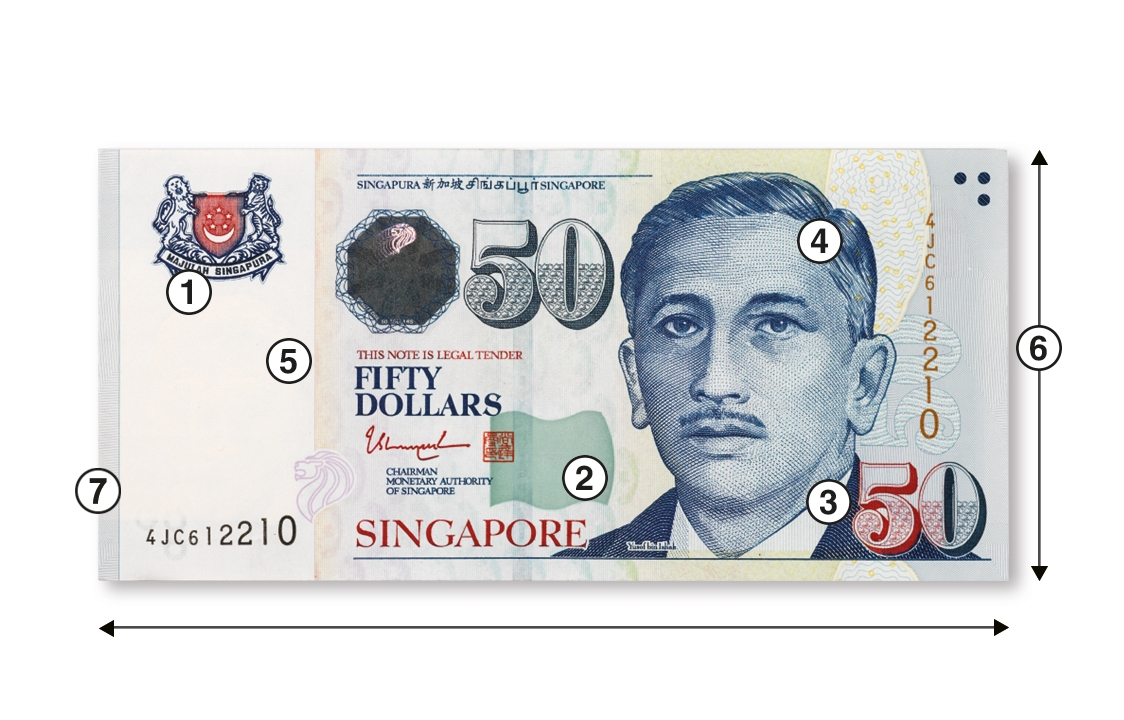 All counterfeit detectors rely on sophisticated security features that central banks deliberately insert into banknotes. These features begin with special treasury paper, which is either a cotton-linen blend or, increasingly, polymer-based. Central banks then design each banknote to contain complex ultraviolet ①,magnetic ② ③, infrared ④, color ⑤, and holographic features. In many currencies, each note type (or denomination) also has a unique, very specific size ⑥, thickness ⑦, and weight, to combat bill bleaching (where counterfeiters bleach a genuine low-value banknote and print a higher-value counterfeit on the same paper).
