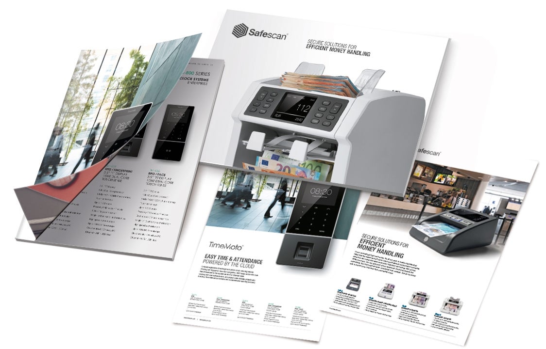 Our trade marketing staff work with you to design custom materials that communicate the value Safescan products offer your customers, using your house style and in your language.