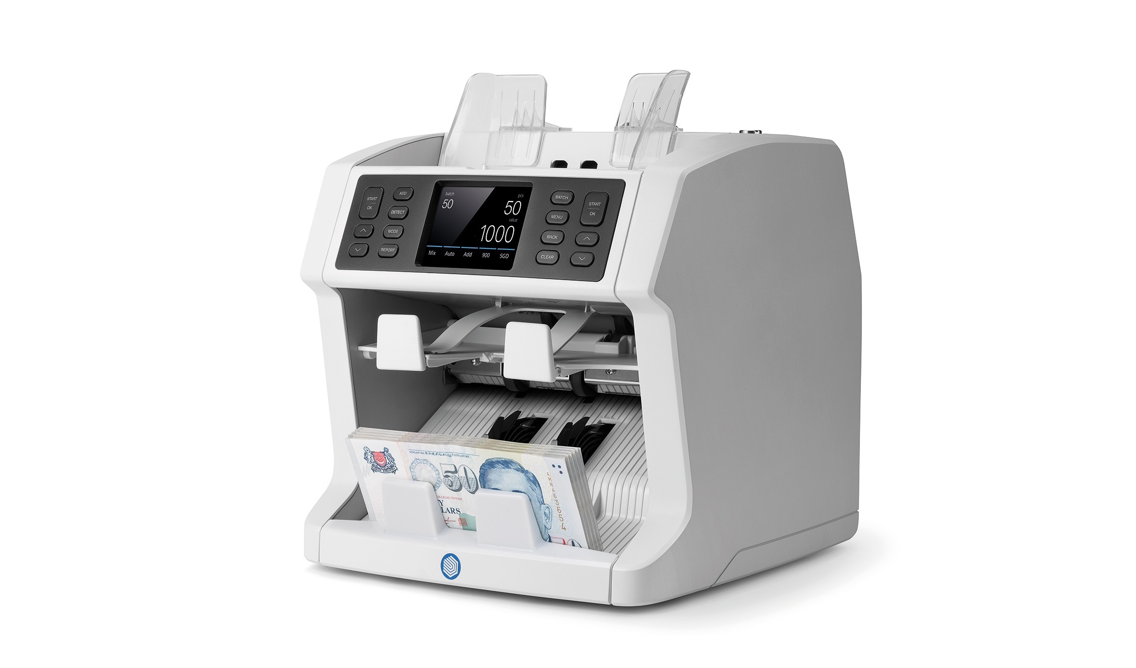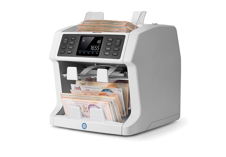 - Rapidly counts banknotes thanks to its large hopper capacity, double pocket design and continuous feeding